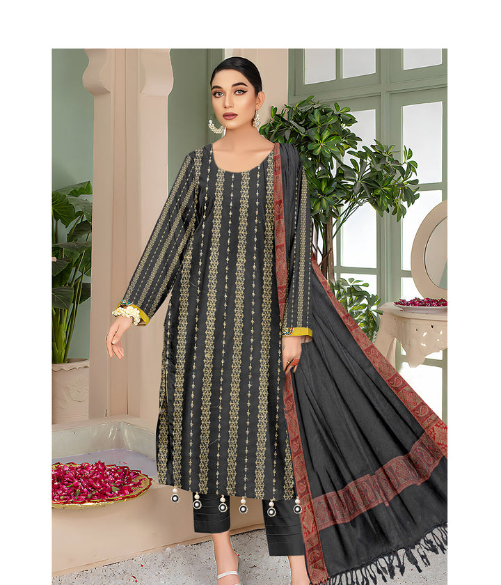 MOONLIGHT 3PC DHANAK EMBROIDERED JACQUARD SHAWL D-3374